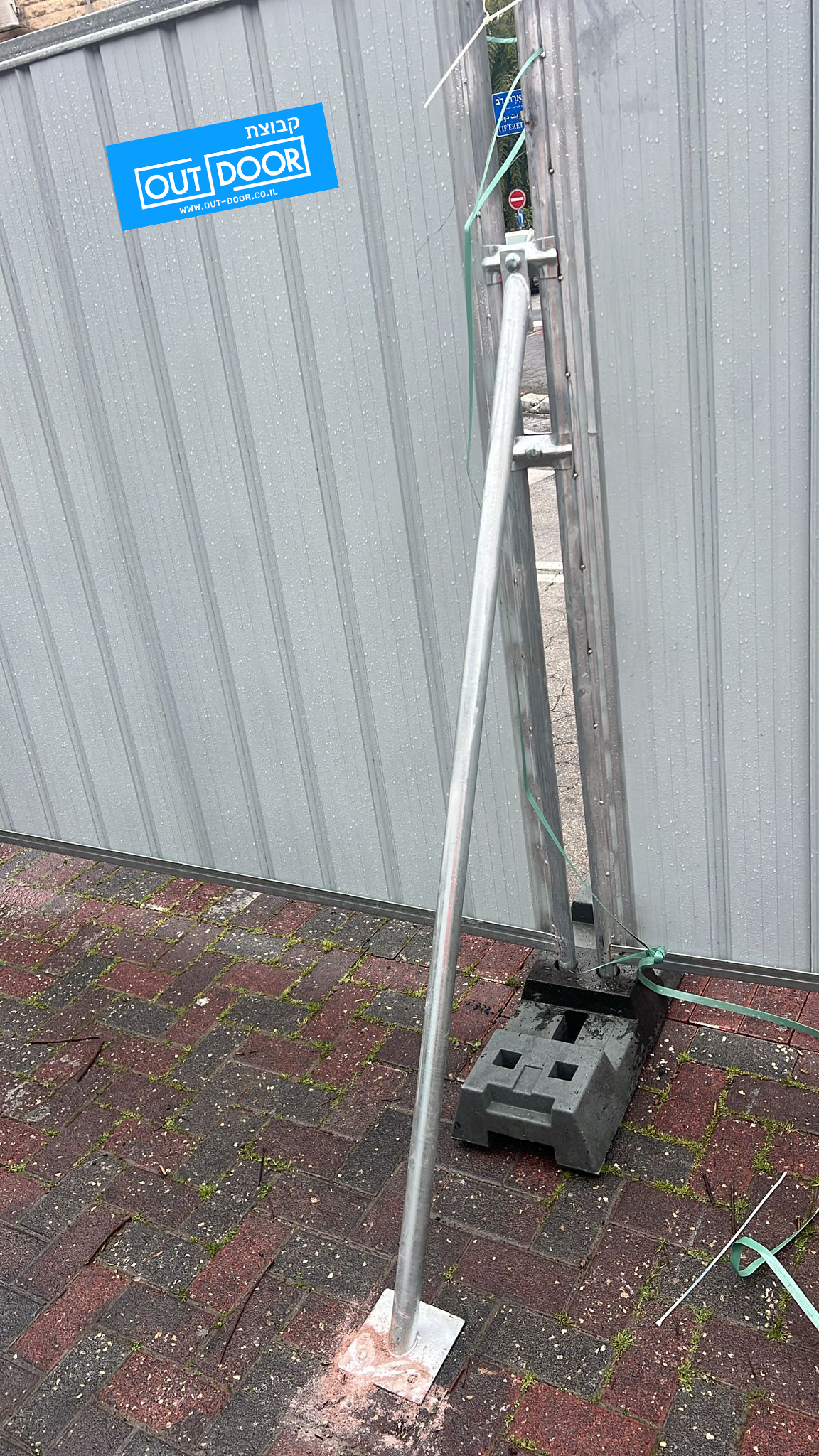 - הגדר מותקנת על בסיסי כובד ומחוברת על ידי תפסני מצמד, בנוסף ניתן להוסיף תוספת חיזוק על ידי אלכסוני תמיכה עם פין נעיצה או בסיסי כובד.